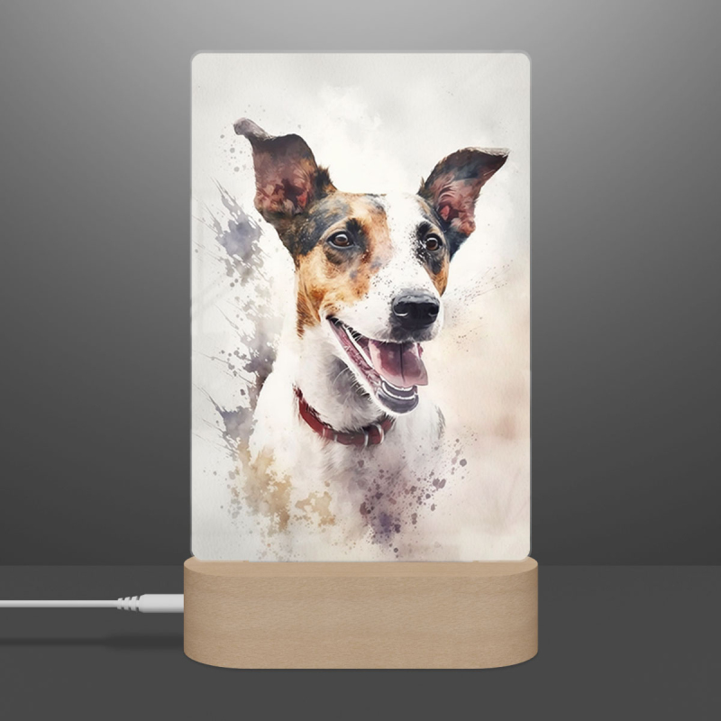 Součástí balení je akrylové sklo dle výběru, dřevěný RGB LED stojánek a napájecí USB kabel.