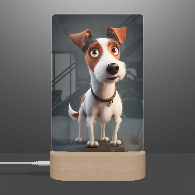 Lampa s digitální grafikou psa
