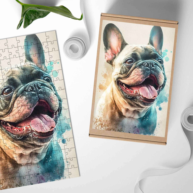 Dřevěné puzzle Francouzský buldoček akvarel