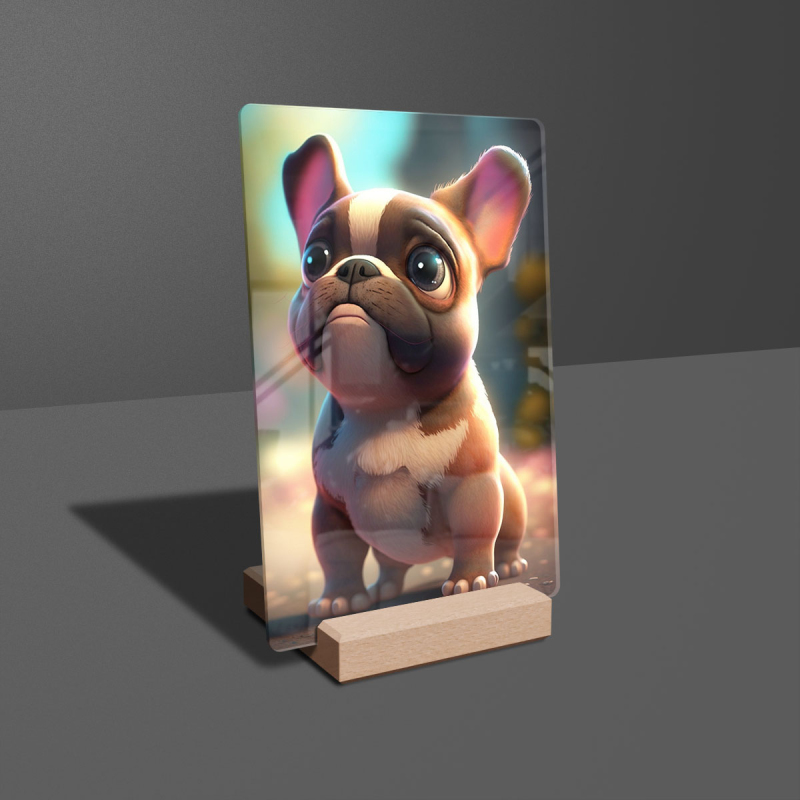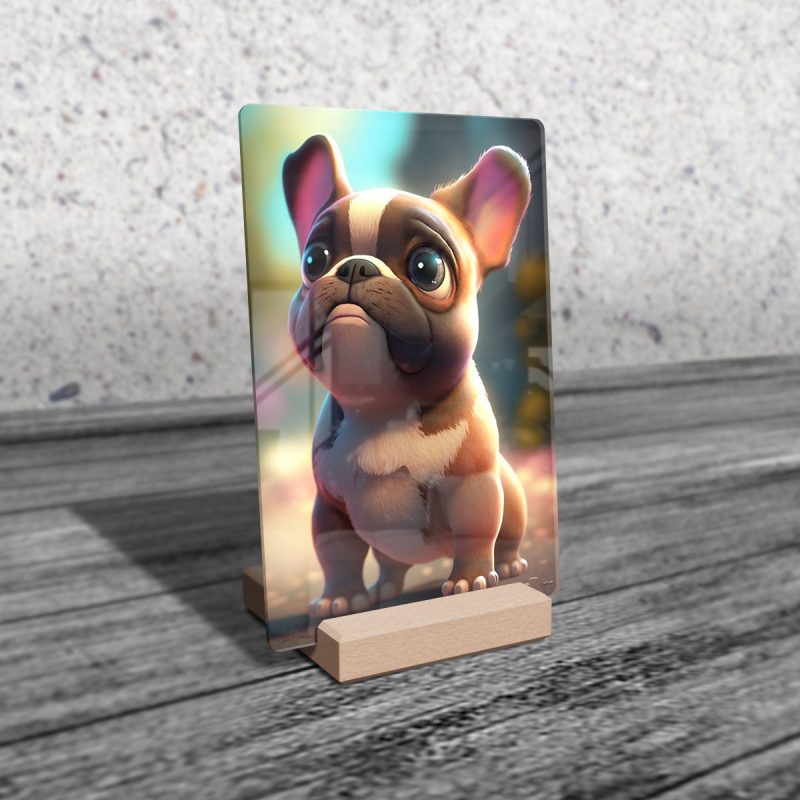 Dárková deska s digitální grafikou psa z akrylového skla.