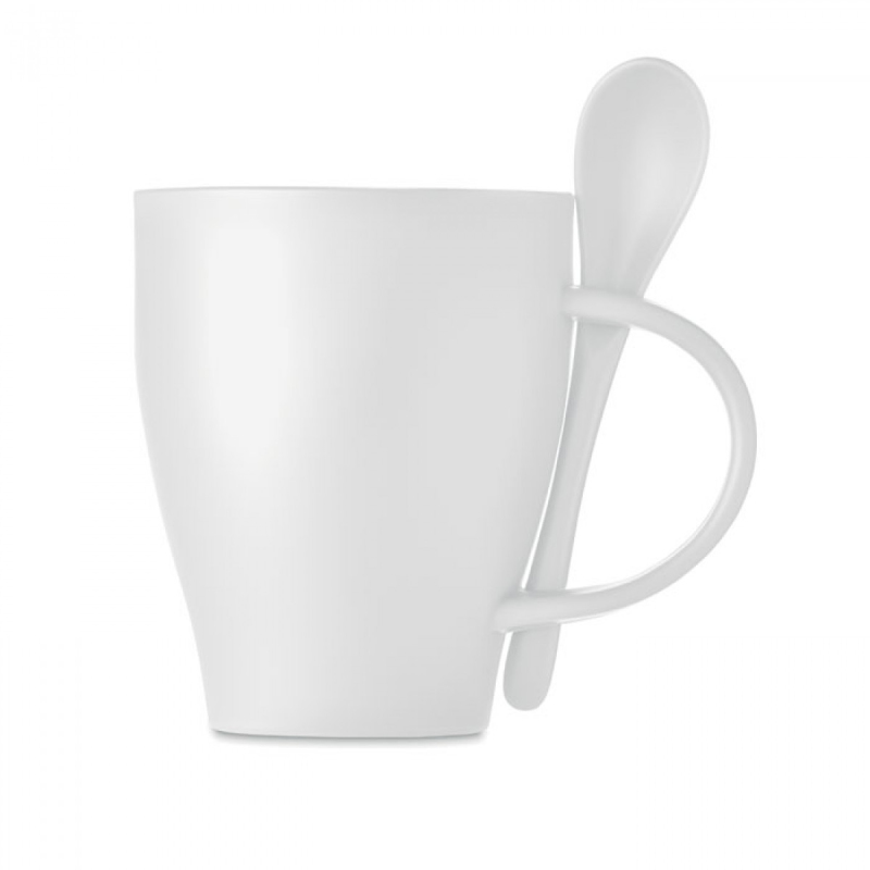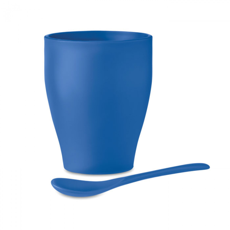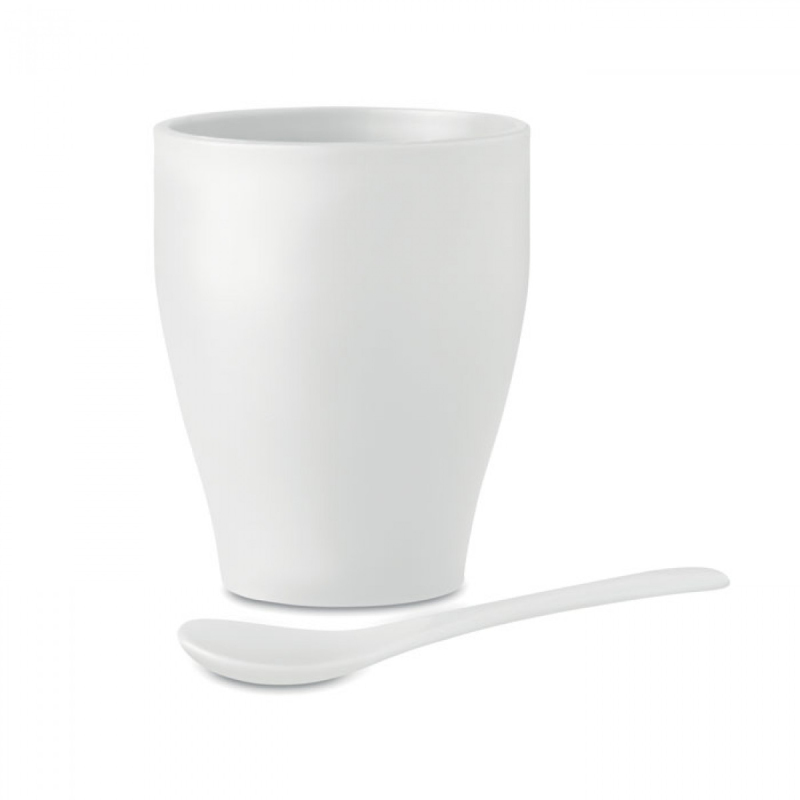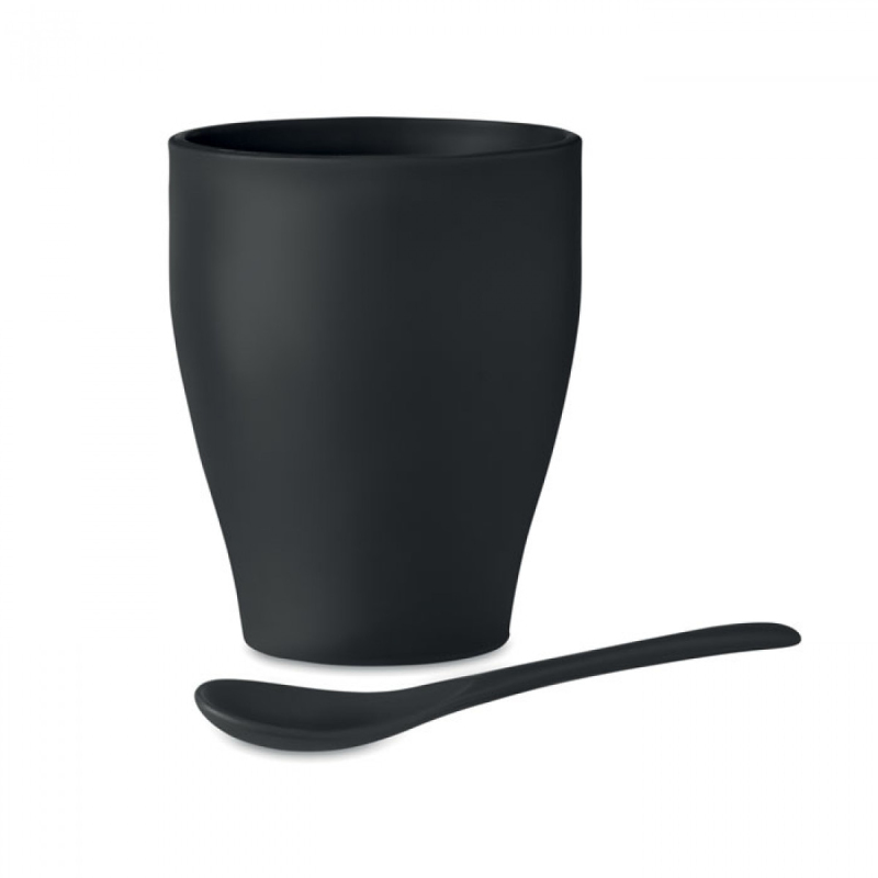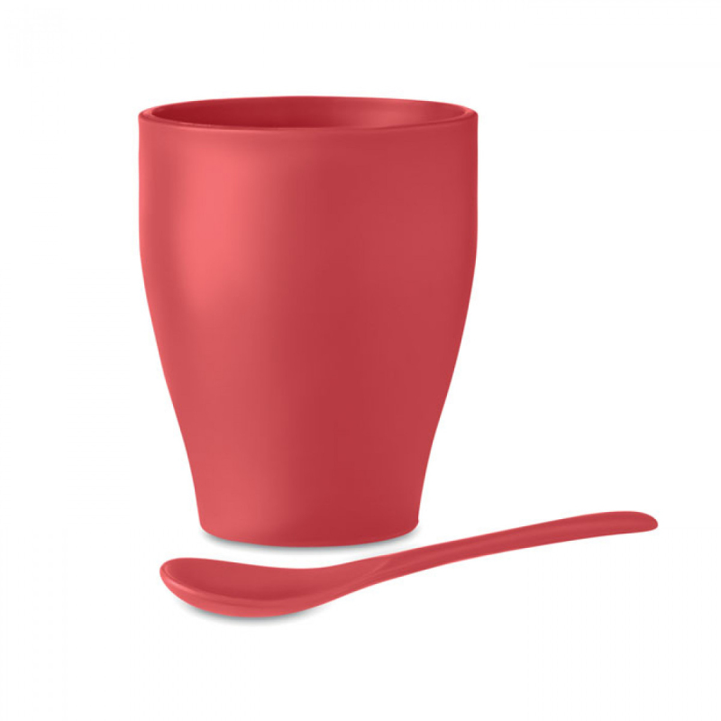 Opakovatelně použitelný hrnek 300 ml z PP plastu se lžičkou.