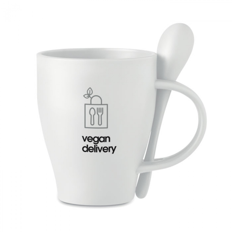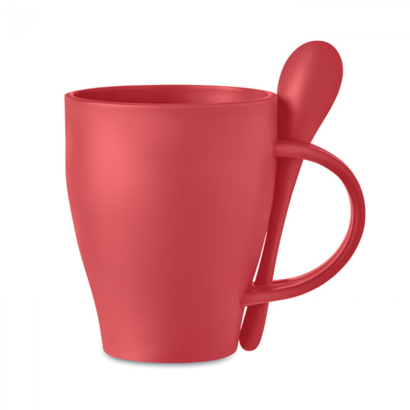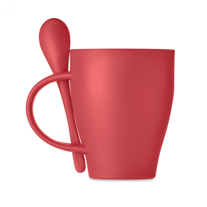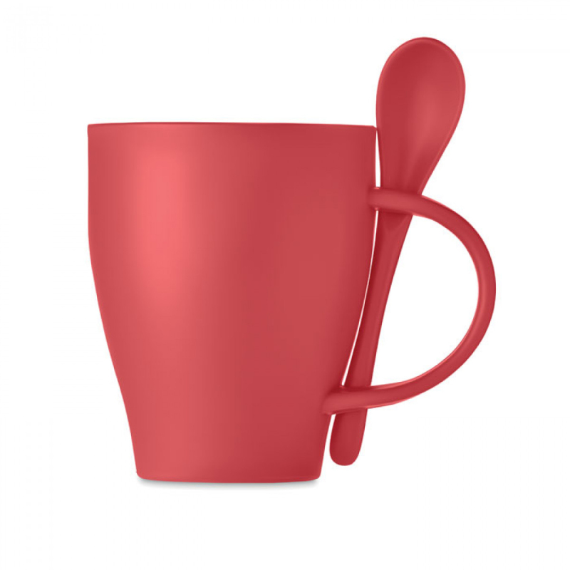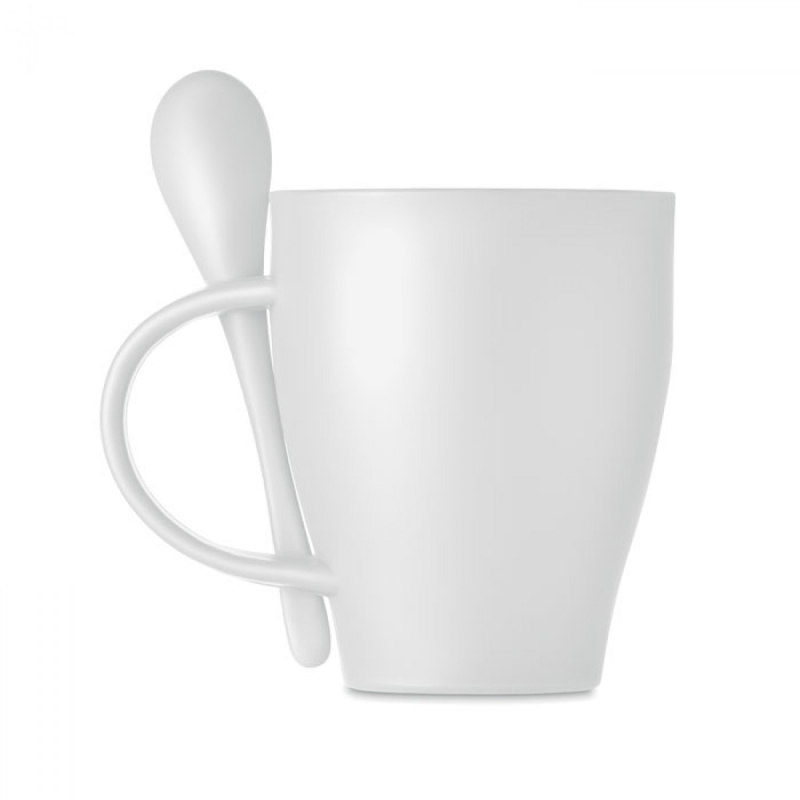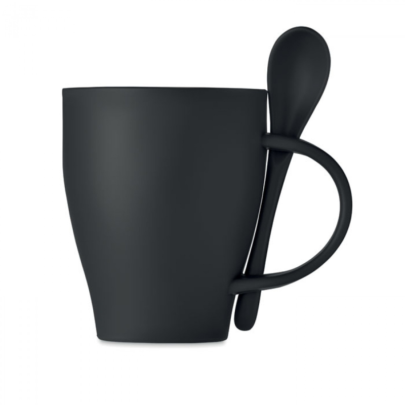 Opakovatelně použitelný hrnek 300 ml z PP plastu se lžičkou.