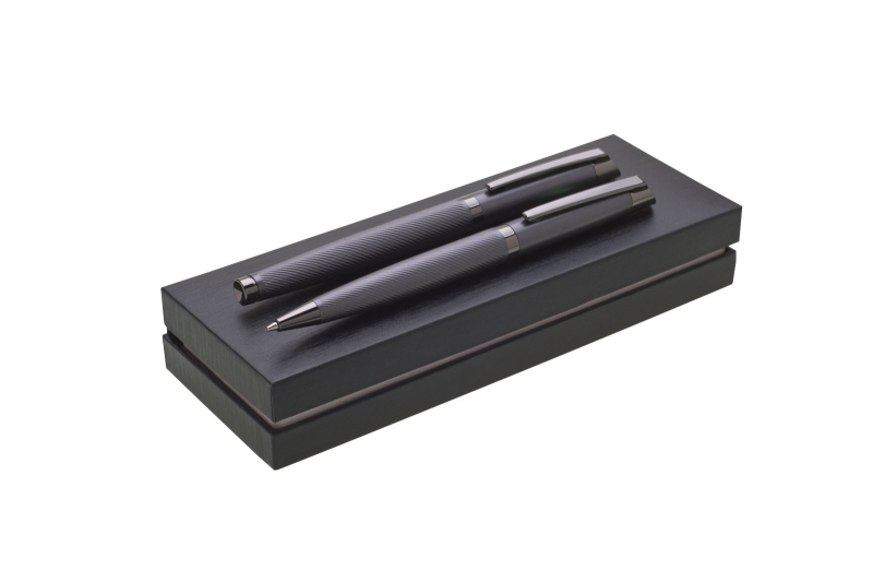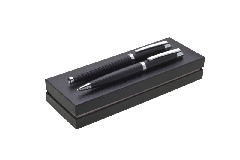 Elegantní sada s propiskou a rollerem Genero v černé barvě se stříbrnými doplňky v dárkové krabičce. Laser na propiskách je lesklý, stříbrný. Kolekce Gabrielis.