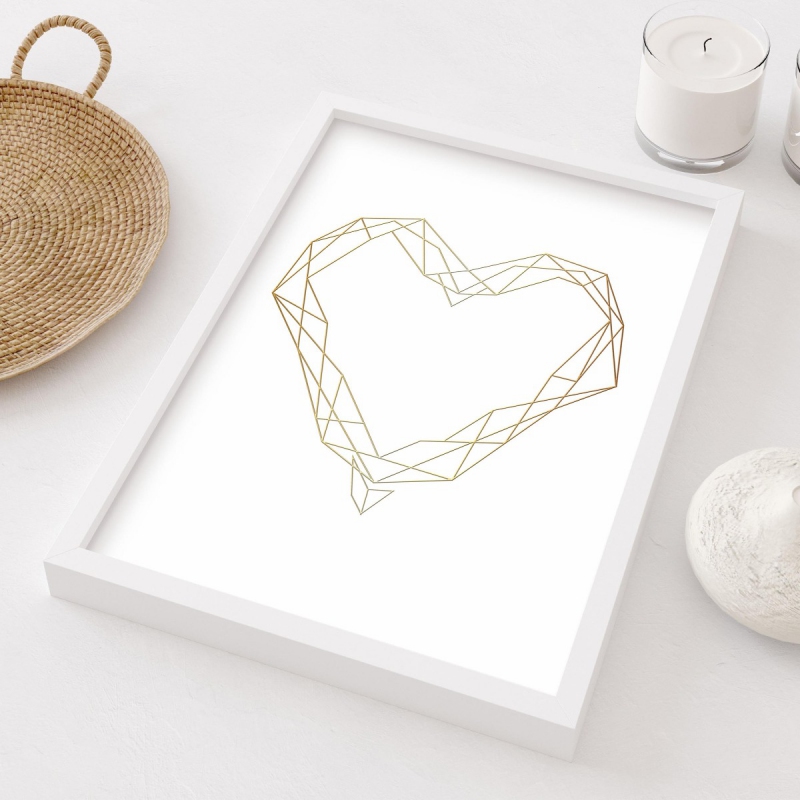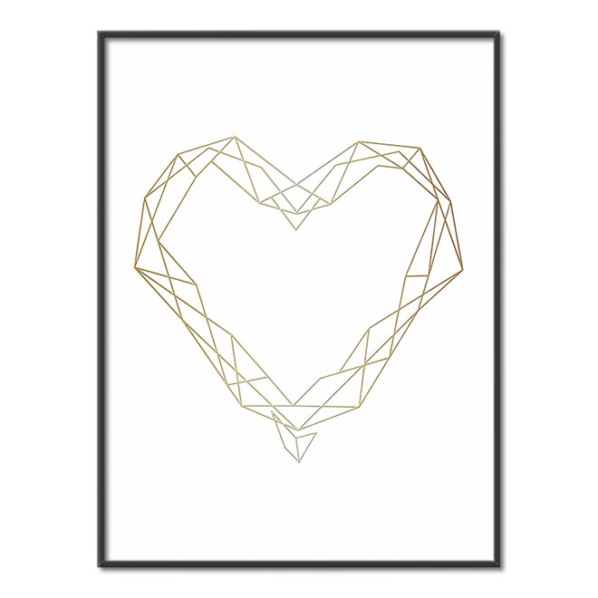 Geometrické srdce 3D Zlatý Plakát