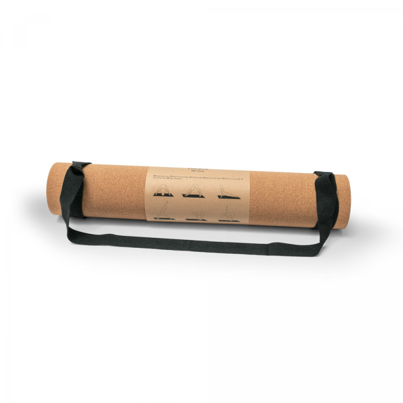Cvičební podložka na jógu z korku a TPE. Tloušťka až 3.7 mm. Obsahuje rukojeť, kterou lze použít pro nošení nebo cvičení, a papírový sáček ilustrující cvičení, která můžete s podložkou dělat. Uzavřený: Ø100 x 610 мм | Otevřený: 1830 x 610 x 3.7 мм