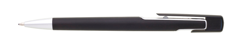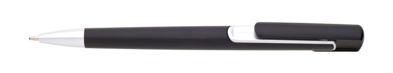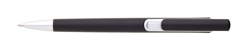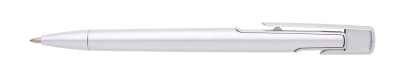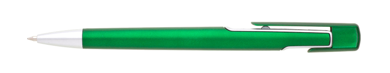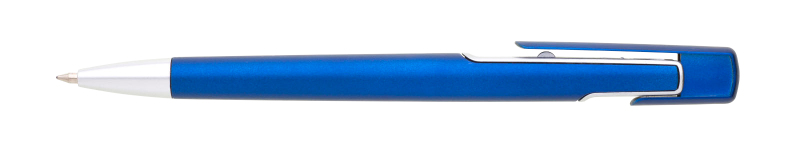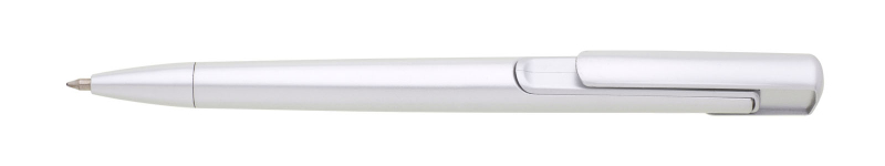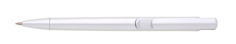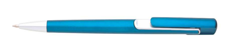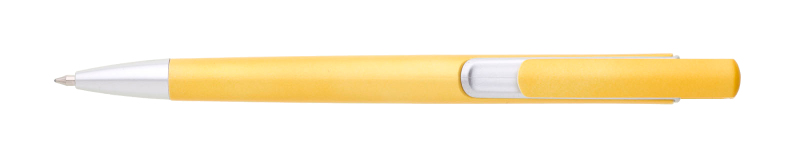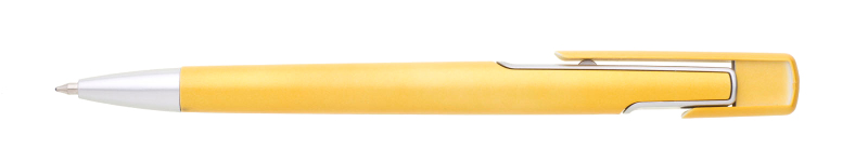 Plastová propiska GIDI s metalickým povrchem a efektním klipem ve žluté barvě, špička je stříbrná. Náplň velkoobsahová, modře píšící.