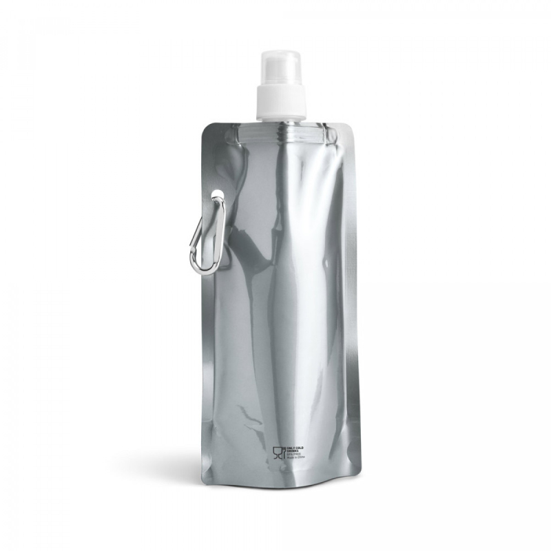 Skládací lahev s karabinou a uzávěrem, s objemem až 460 ml, dostupná v metalických odstínech. 110 x 218 x 64 mm