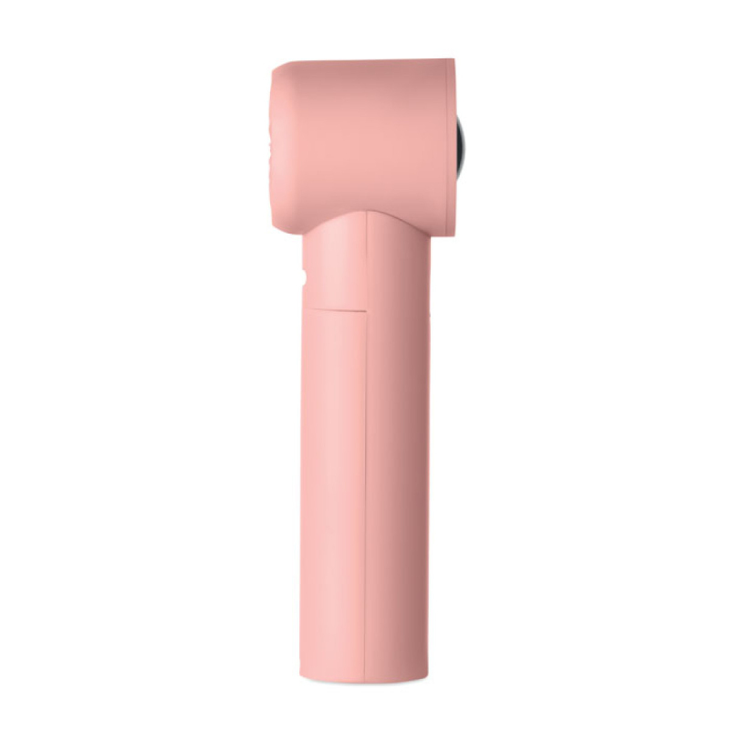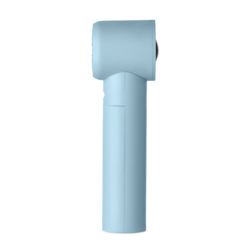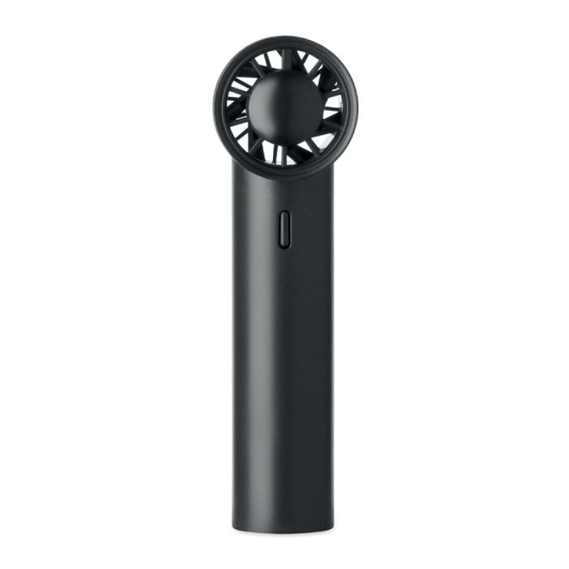 Ruční mini ventilátor z ABS s displejem a 5 nastaveními rychlosti. Obsahuje vyměnitelnou lithiovou baterii s kapacitou 2600 mAh.
