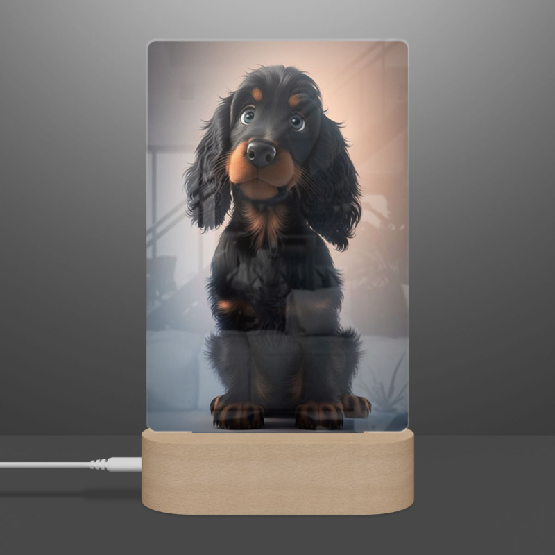Součástí balení je akrylové sklo dle výběru, dřevěný RGB LED stojánek a napájecí USB kabel.