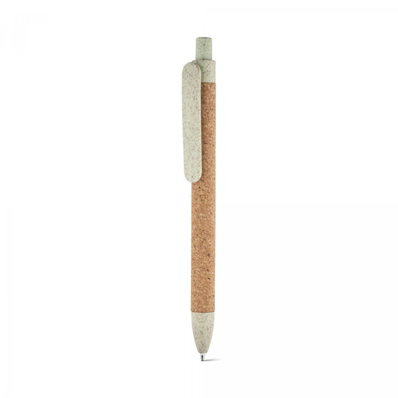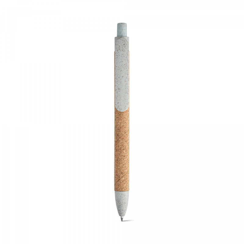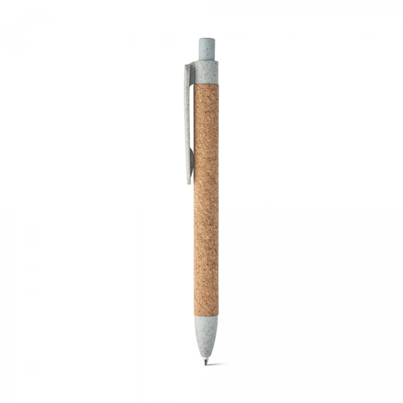 Korkové kuličkové pero s clipem a barevnými prvky z vláken z pšeničné slámy. Modrý inkoust.ø11 x 140 mm