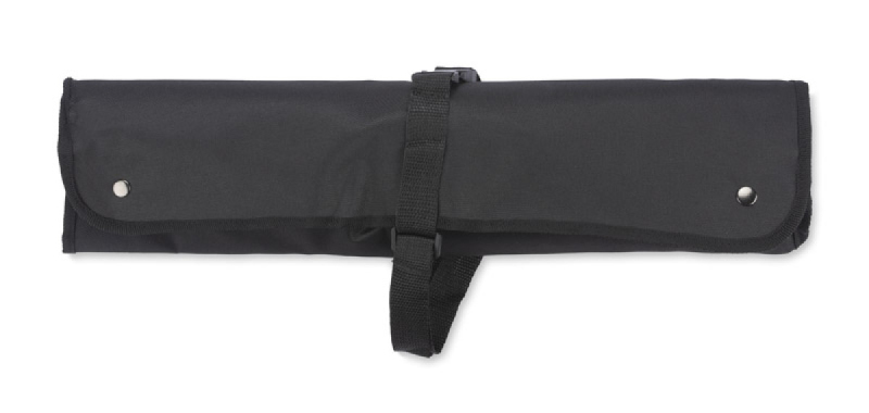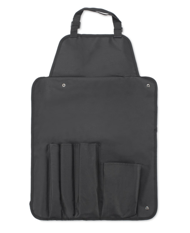 Sada grilovacích nářadí v kompletu s rukavicí a zástěrou, která plní také roli pouzdra. Komplet se skládá z nejpotřebnějších během grilování zařízení: kleští, vidlice a grilovací obracečky. Zástěra chrání oblečení proti skvrnám, a rukavice chrání proti popáleninám.