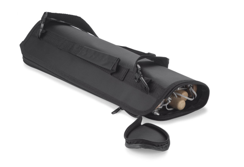 Grilovací sada RIVA v polyesterovém pouzdře obsahuje 10 prvků s dřevěnými rukojeťmi: 2 špízy, kleště, obracečku, vidličku a 4 držáky na kukuřici.