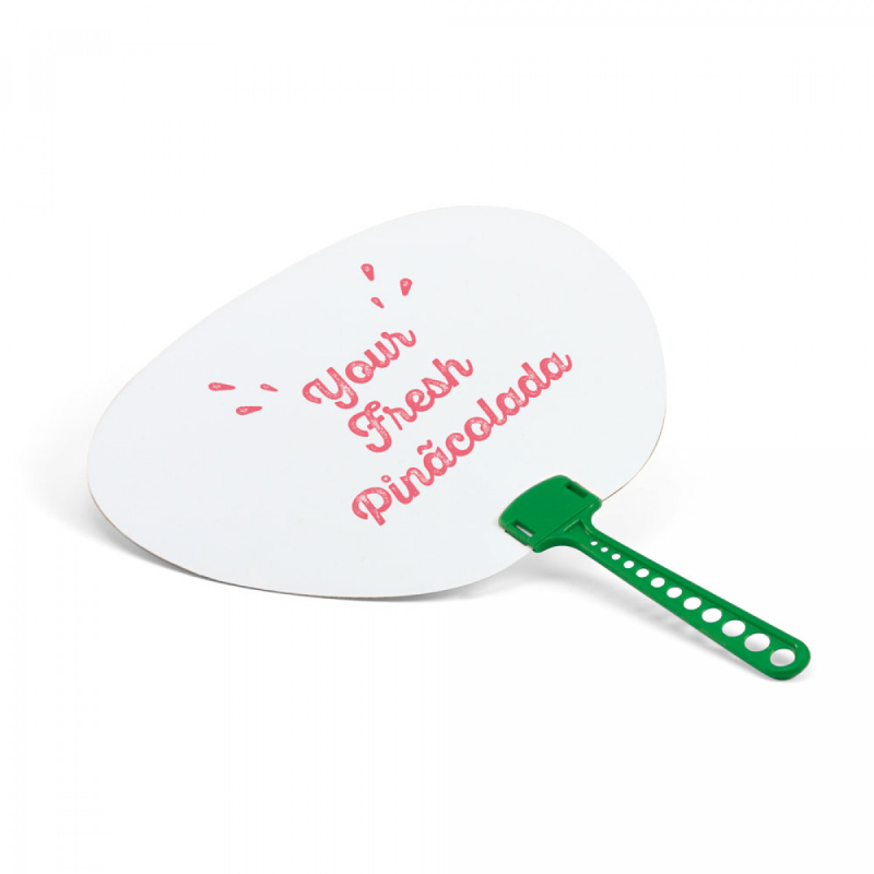 Ruční větrák z PP a PVC s barevným držadlem.180 x 240 x 4 mm