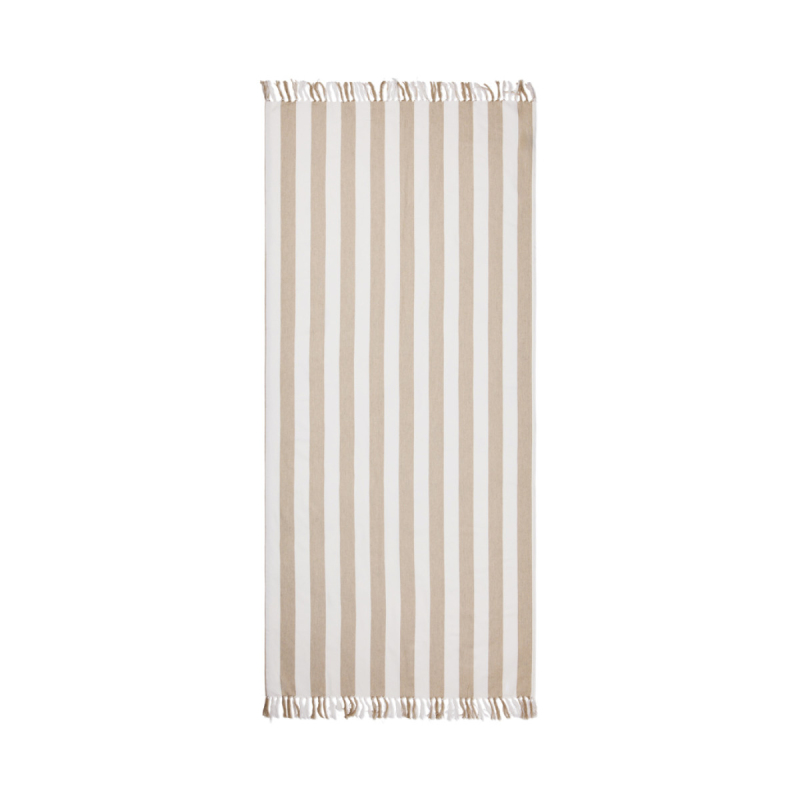 Plážová osuška hamam má klasický dvoubarevný pruhovaný vzor s třásněmi. Je vyrobena z lehké a vzdušné směsi o gramáži 200 g/m2 a kombinuje pohodlí bavlny s rychleschnoucími vlastnostmi polyesteru. Rozměry 80x180 cm jsou ideální na pláž nebo k bazénu. Certifikát GRS zaručuje, že celý dodavatelský řetězec recyklovaných materiálů je certifikován. Celkový obsah recyklovaného materiálu se odvíjí od celkové hmotnosti výrobku. Tento výrobek obsahuje 69 % recyklované bavlny s certifikací GRS a 29 % recyklovaného polyesteru s certifikací GRS.