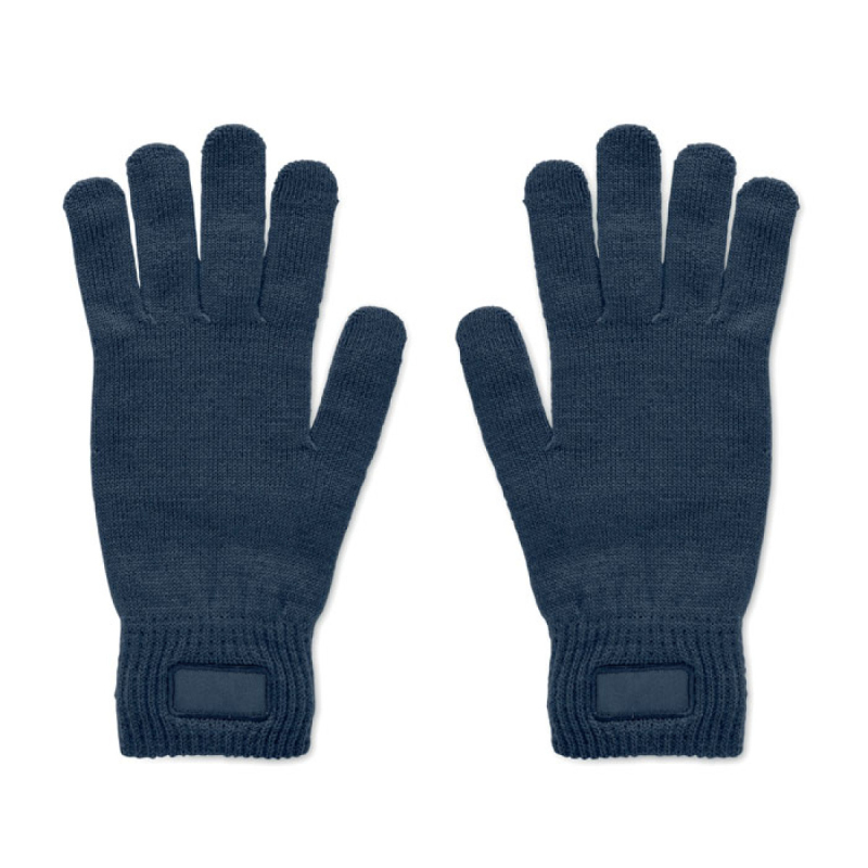 Pletené rukavice z měkkého strečového polyesteru RPET s nášivkou.