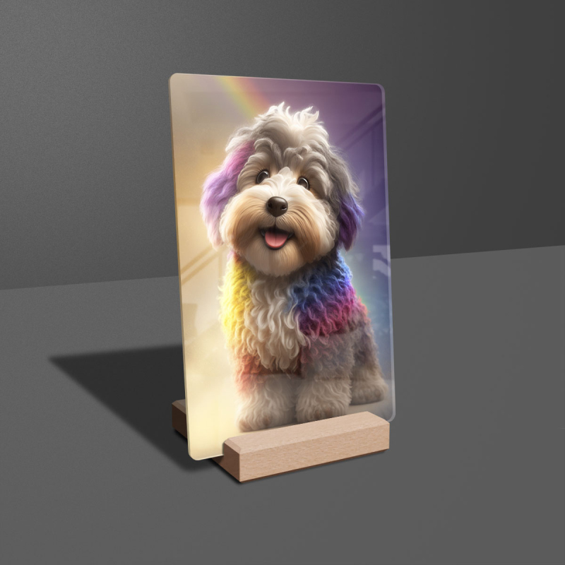 Dárková deska s digitální grafikou psa z akrylového skla.