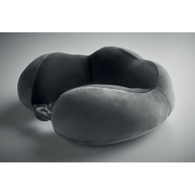 Cestovní polštářek z pěny s měkkým spandexem. Dodáváno ve stahovacím obalu z 210D RPET polyesteru.