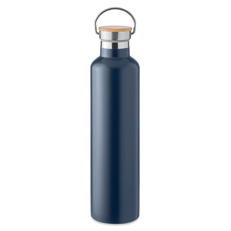 Dvoustěnná izolační vakuová termoska z nerezové oceli s bambusovým víčkem a držadlem na přenášení. Objem: 750 ml.