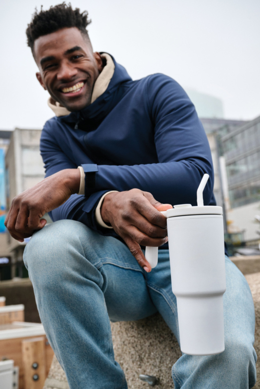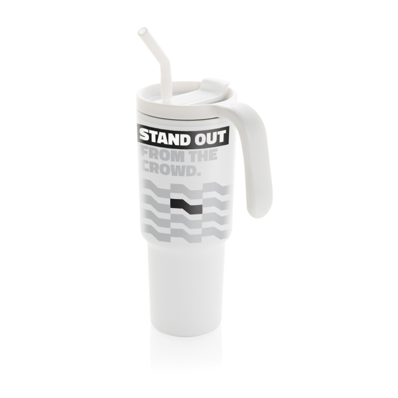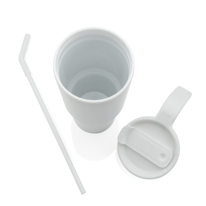 Nejoblíbenější hrnek je nyní vhodný pro perfektní 360° potisk po celém těle. Hrnek je vyroben z recyklovaných materiálů. Inovativní víčko má otočný uzávěr se třemi pozicemi: otvor pro brčko odolný proti rozlití, náustek na pití a plně utěsněný uzávěr. Ergonomická rukojeť s pohodlným úchytem zajišťuje snadné nošení a tenká základna se vejde do většiny držáků nápojů v autě. Recyklovaný obsah dle celkové váhy produktu: 36 %. Pouze ruční mytí. Bez BPA. Kapacita: 900 ml. Zahrnuje dárkové balení z kraftového papíru s certifikací FSC®.