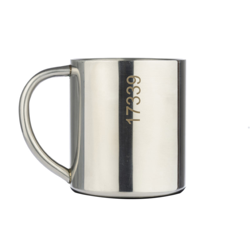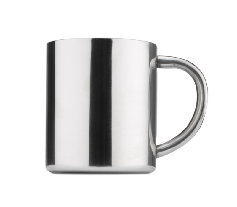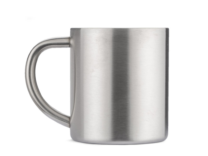 Praktická hrníček z nerezové oceli. Kapacita 210 ml. Jeho výhody jsou malá hmotnost a dvojité stěny, které udržují teplotu déle. Označení může být provedeno na povrchu těla.