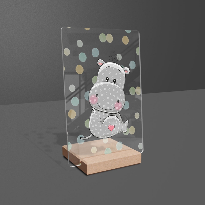 Na produktovém fotu vyobrazena nejoblíbenější varianta akrylového skla 14x21/21x14cm a dřevěný stojánek 10x10cm.