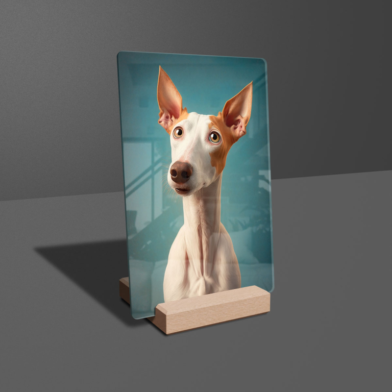Dárková deska s digitální grafikou psa z akrylového skla.