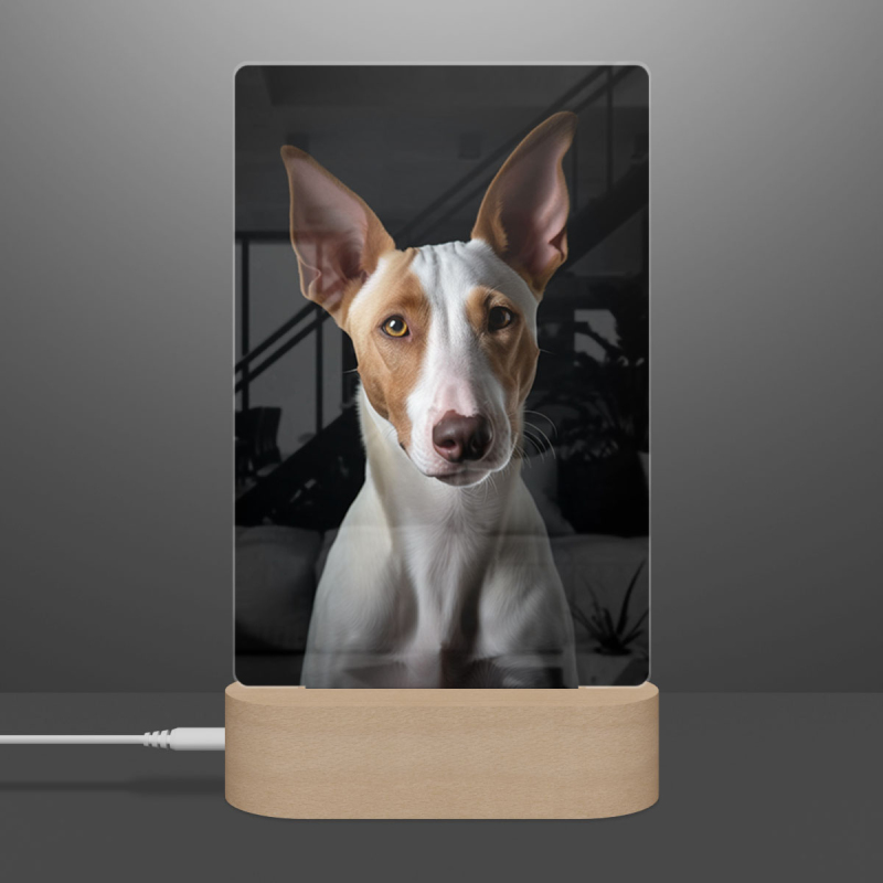 Součástí balení je akrylové sklo dle výběru, dřevěný RGB LED stojánek a napájecí USB kabel.