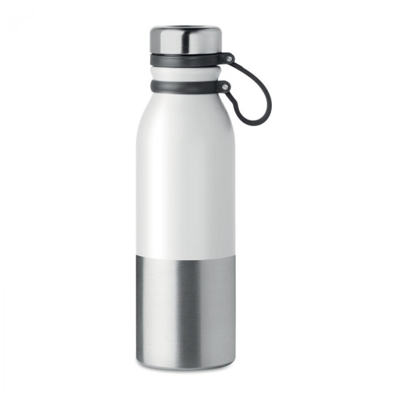 Dvoustěnná nerezová láhev se silikonovým potahem pro snadné nošení. Neteče. Objem 600 ml. Neteče.