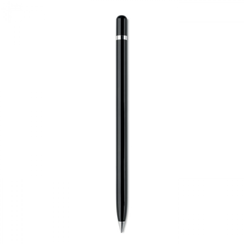 Hliníková propiska s dlouhou životností. Pero píše špičkou z kovové slitiny. Bez inkoustu.