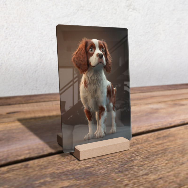 Dárková deska s digitální grafikou psa z akrylového skla.