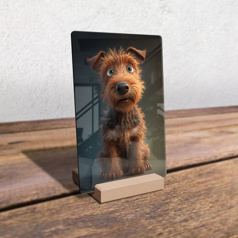Dárková deska s digitální grafikou psa z akrylového skla.