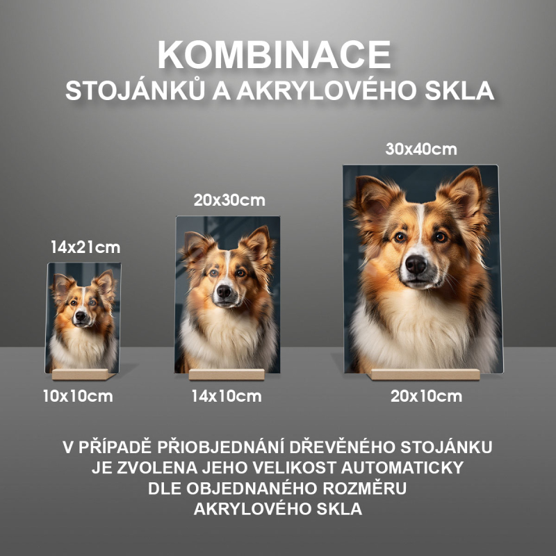 V případě přiobjednání dřevěného stojánku je zvolena jeho velikost automaticky dle objednaného rozměru akrylového skla viz produktové foto.