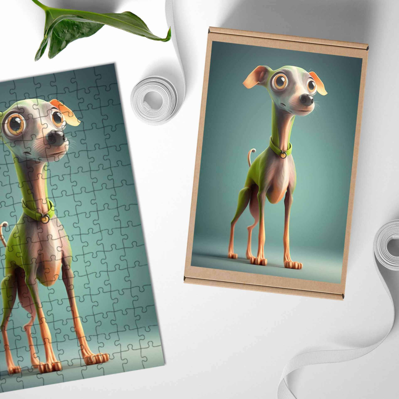 Dřevěné puzzle Italský chrtík animovaný