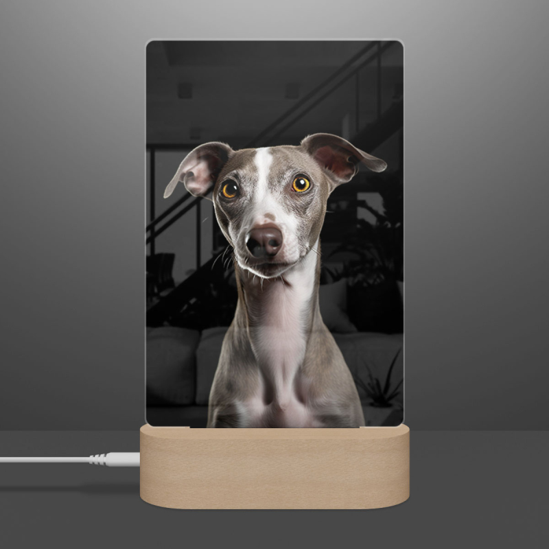 Lampa s digitální grafikou psa