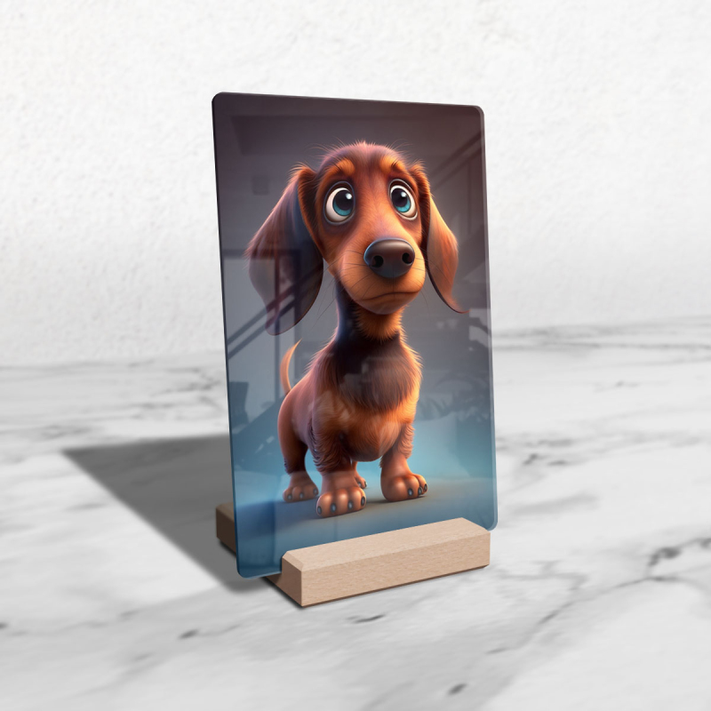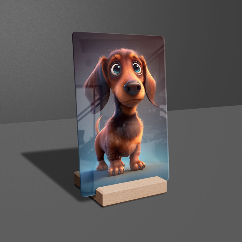 Dárková deska s digitální grafikou psa z akrylového skla.