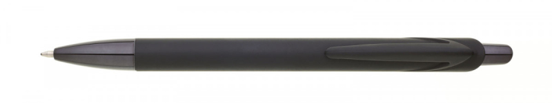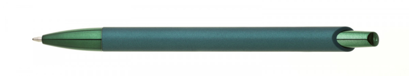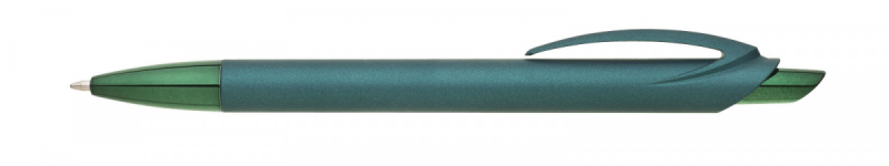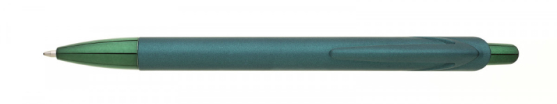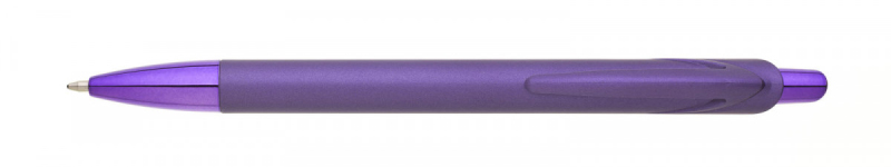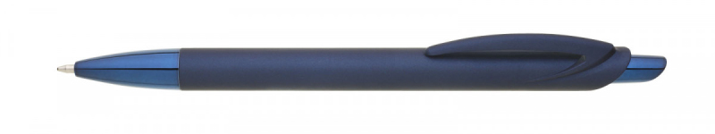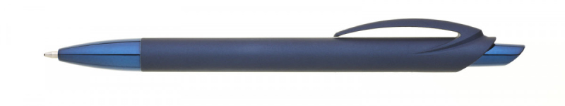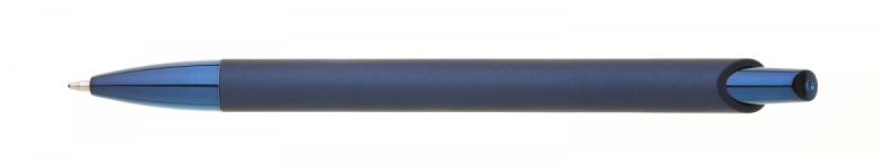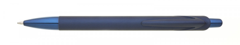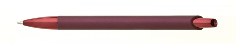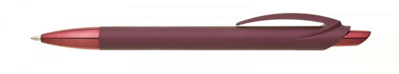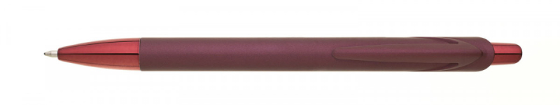 Červené plastové metalické tělo doplňují lesklé barevné doplňky. Velkoobsahová gelová náplň, modře píšící.