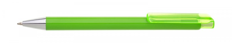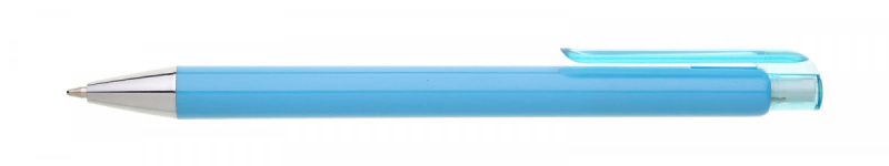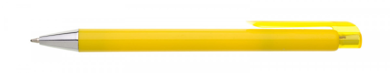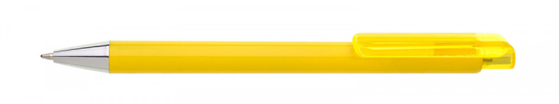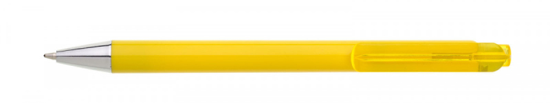 Celoplastová tužka JOXY žlutá s širokým transparentním klipem a pochromovanou špičkou. Náplň X20-10,6 mm modře píšící.