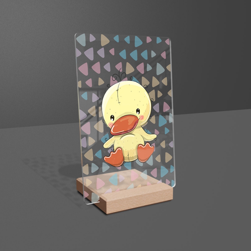 Na produktovém fotu vyobrazena nejoblíbenější varianta akrylového skla 14x21/21x14cm a dřevěný stojánek 10x10cm.