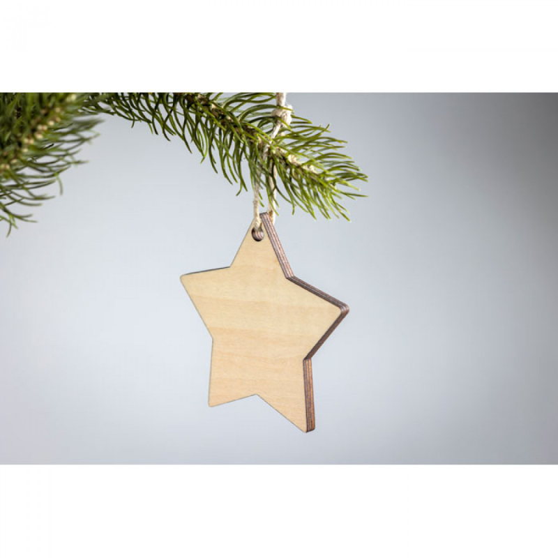 Vánoční ozdoba z překližky s jutovým provazem pro sublimaci ve tvaru hvězdy. Bílý potisk není možný.