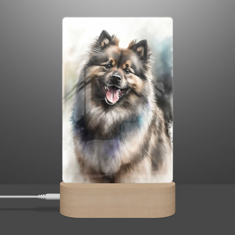 Součástí balení je akrylové sklo dle výběru, dřevěný RGB LED stojánek a napájecí USB kabel.