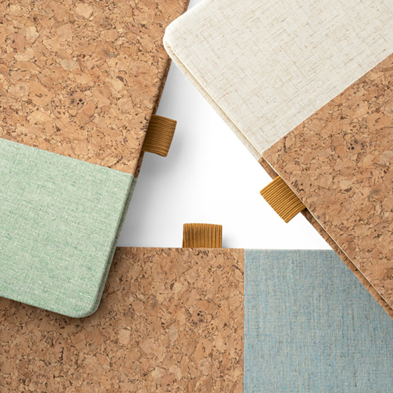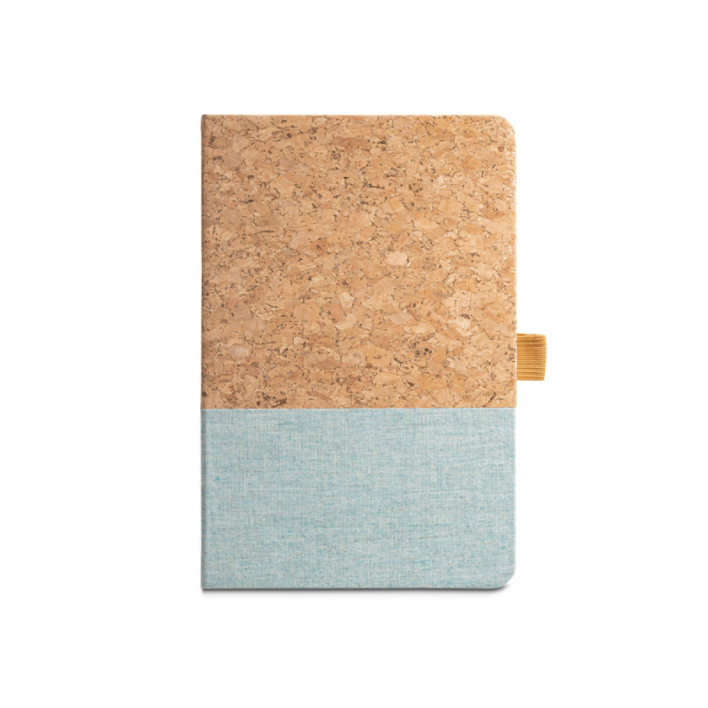 Poznámkový blok ve formátu A5 s obalem z korku, spodní část obalu ze lnu. Tento zápisník má 192 linkovaných listů v barvě slonoviny z papíru vyhovujícího zásadám udržitelného rozvoje lesních porostů. Obsahuje držák na pero (pero není součástí balení). Dodáváno v řemeslné dárkové krabičce. 140 x 210 mm