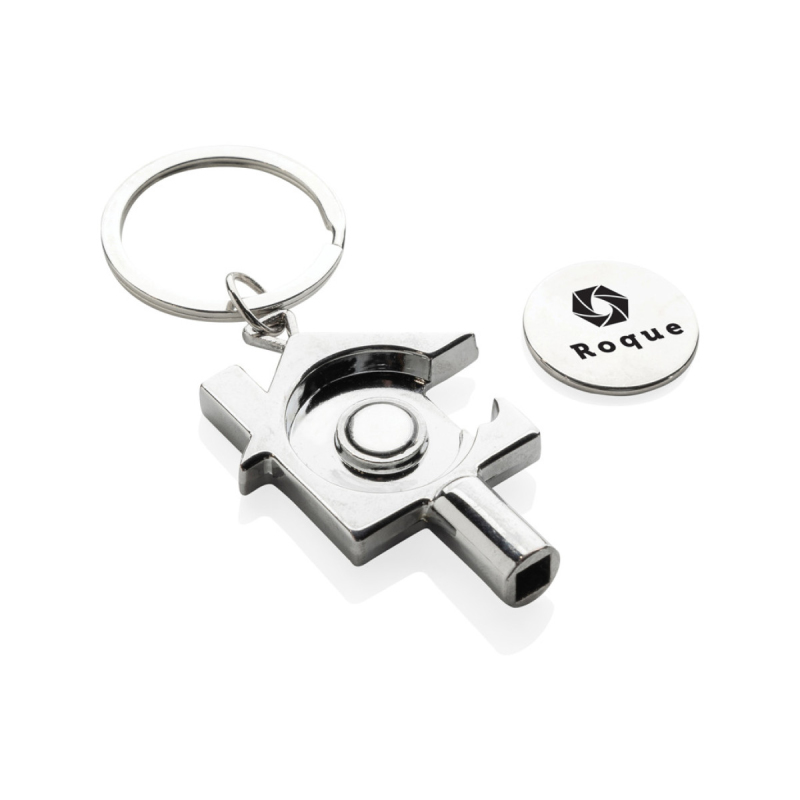 Multifunkční klíčenka s otvírákem na lahve, žetonem na nákupní koš a klíčem na radiátor. Vyrobená z RCS recyklované slitiny zinku. RCS certifikace zajišťuje garanci použití recyklovaného materiálu díky transparentnímu přehledu nad dodavatelským řetězcem. Celkový podíl recyklátu dle váhy produktu: 80 %. Baleno v papírovém obalu.