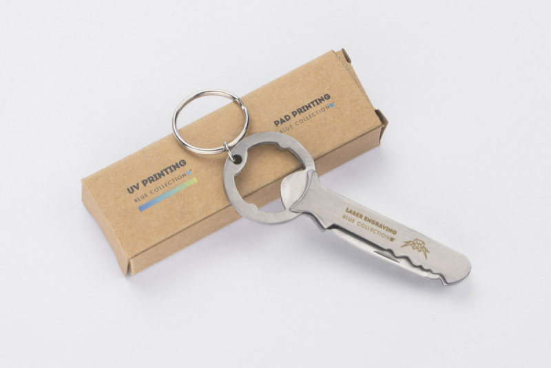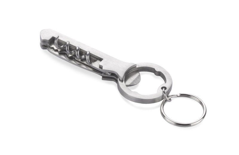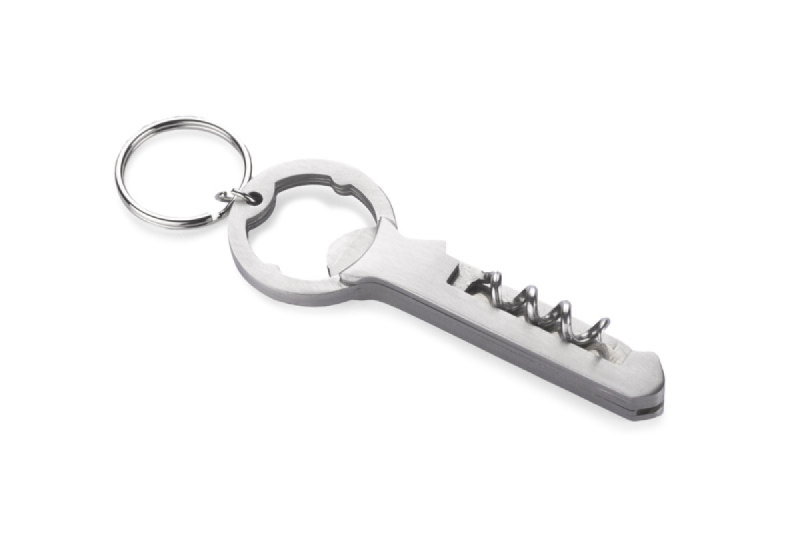 Alco má 3 funkce: kroužek na klíče, otvírák na lahve a vývrtku. Vyrobeno z nerezové oceli. Baleno v hnědé kartonové krabici.