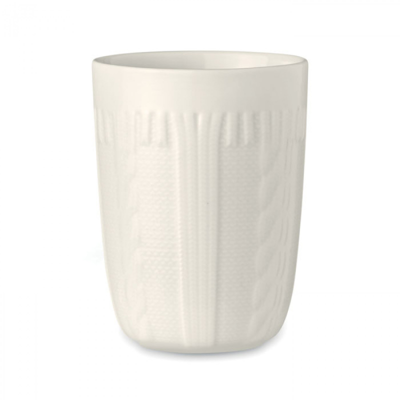 Keramický hrnek s pletených designem. Objem 310 ml. Baleno v samostatné krabičce.