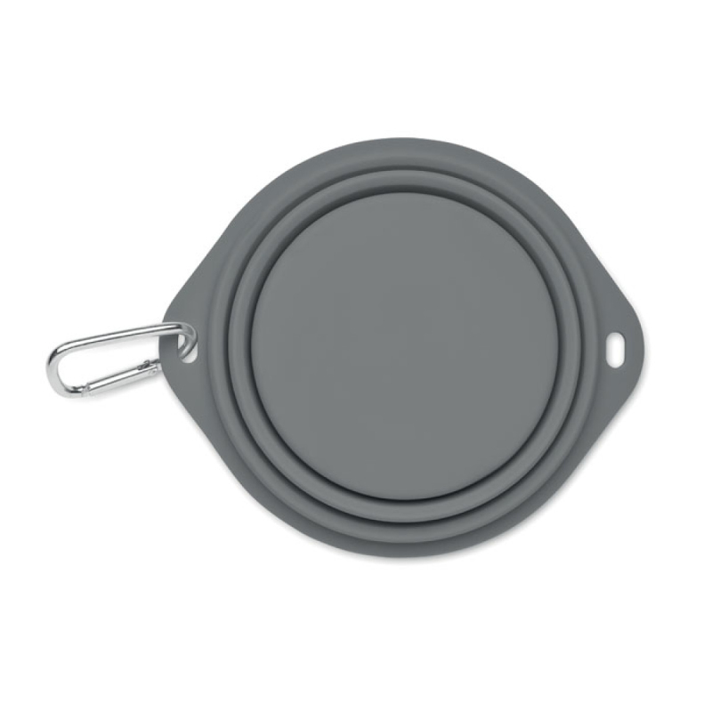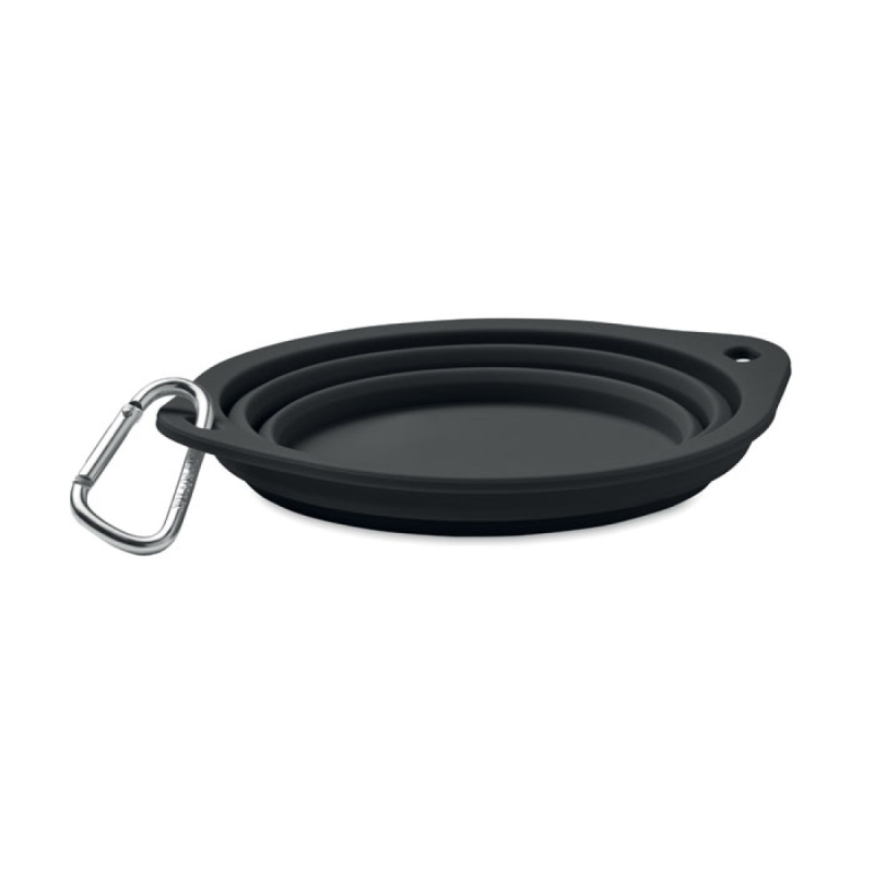 Skládací přenosná silikonová miska pro domácí zvířata s karabinou. Objem: 350 ml. Karabina není určena pro lezení (neprofesionální použití).