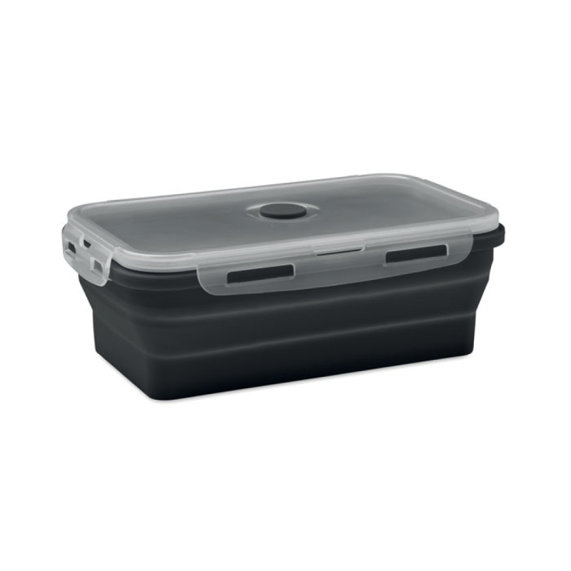 Skládací silikonový box na oběd či svačinu. Víčko z PP a silikonový ventil. Objem: 1200 ml.