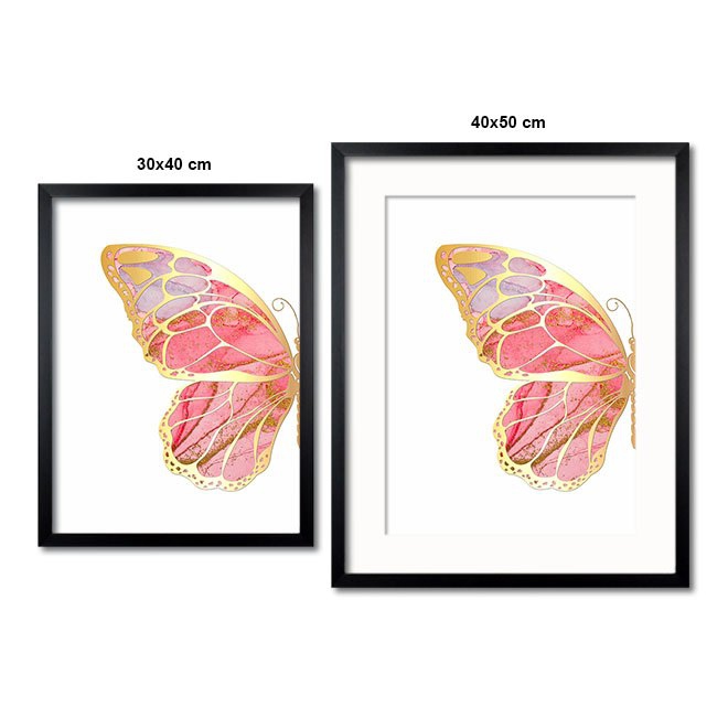 Růžový motýl 3D Zlatý Plakát (30x40cm)