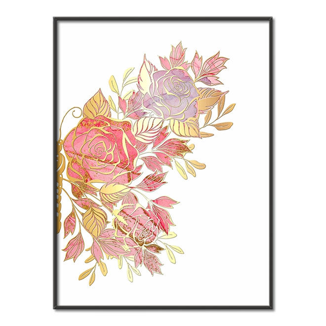 Růžový květovaný motýl 3D Zlatý Plakát (30x40cm)