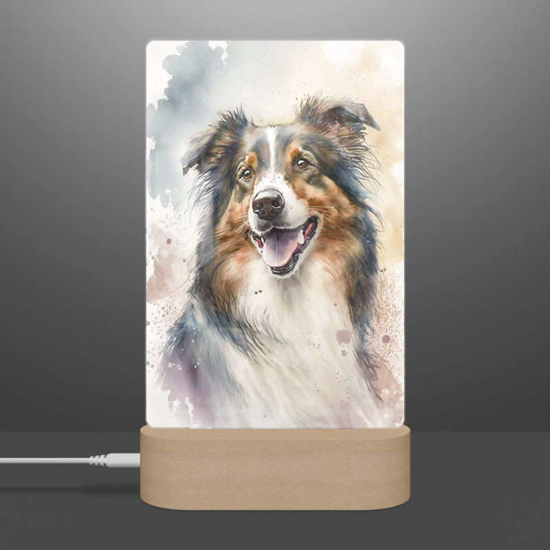Součástí balení je akrylové sklo dle výběru, dřevěný RGB LED stojánek a napájecí USB kabel.