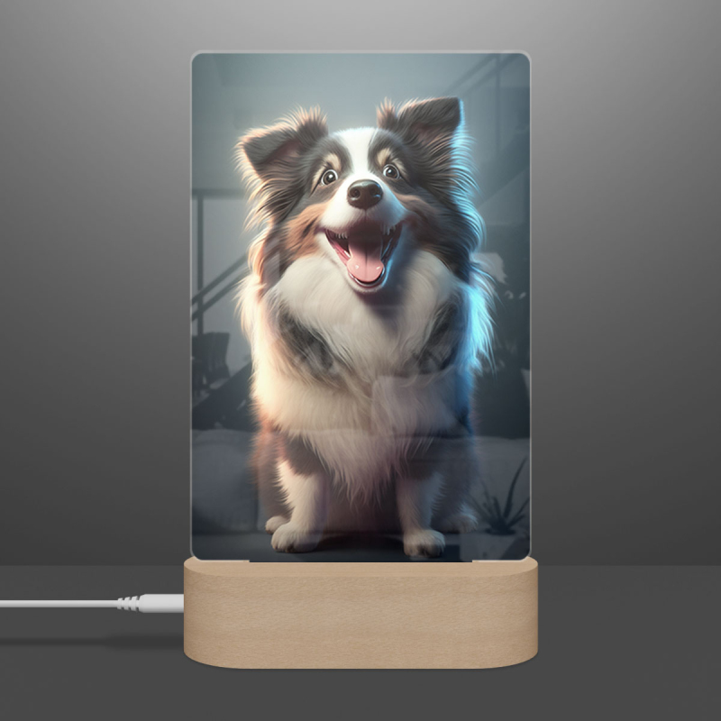 Lampa s digitální grafikou psa
